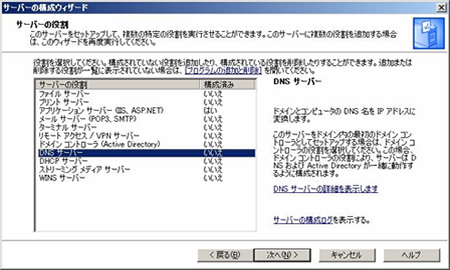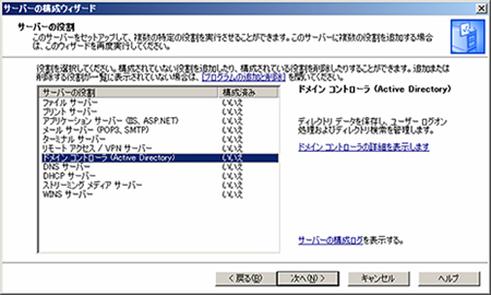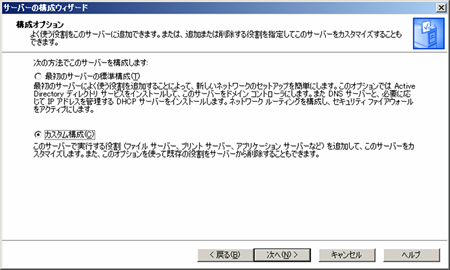 - [スタート]→[管理ツール]→[サーバーの構成ウィザード]をクリックし「次へ」を押下