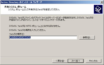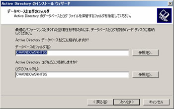 - Active Directory のデータベースとログを格納するフォルダを指定