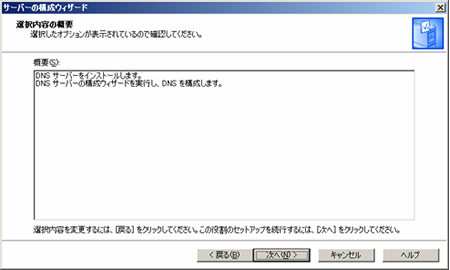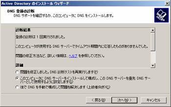 - 「このコンピュータにDNSサーバ〜」にチェックをつけ「次へ」を押下