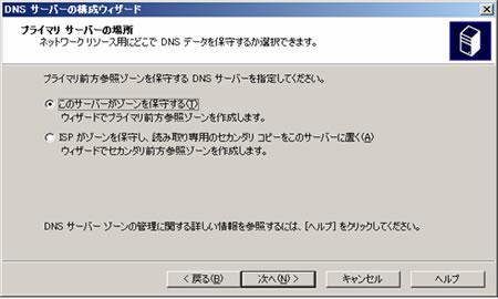 - 「このサーバーがゾーンを保守する」にチェックを付け「次へ」を押下