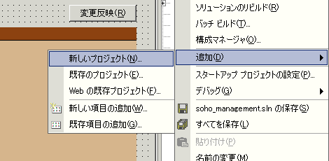 - [メニュー]→[追加]→[新しいプロジェクトの追加]を選択