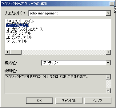 - [追加]→[プロジェクト出力]を選択