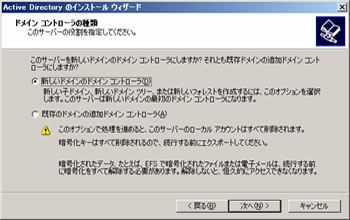 今回はWindows Server 2003だけでサーバーを構成するため Windows 2000またはWindows Server 2003との互換性を選択し 「次へ」 を押下