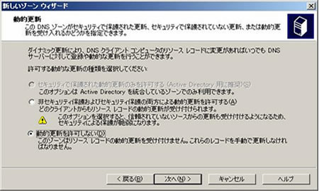 - PDCの場合「動的更新を許可しない」にチェックを付け「次へ」を押下